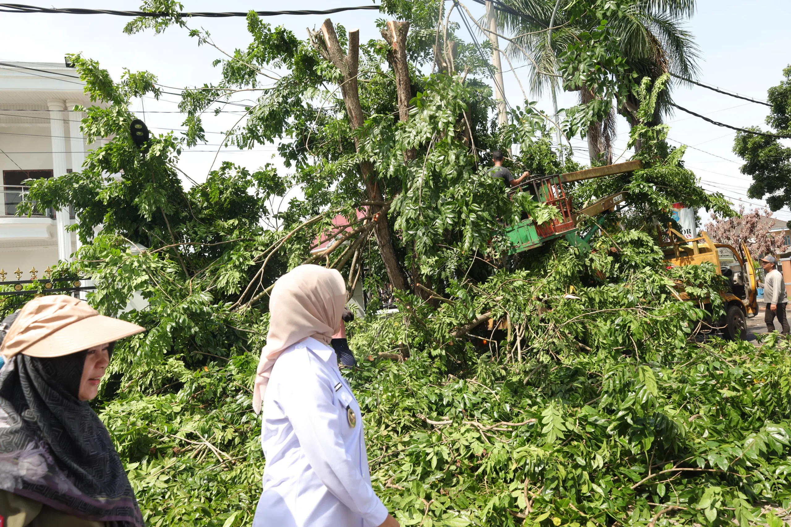 Dessy Ayutrisa menjelaskan bahwa pemangkasan pohon dilakukan untuk mengurangi potensi bahaya bagi pengguna jalan serta warga yang rumahnya berada di sekitar pohon besar, termasuk di Jalan Kantor Kelurahan Lontong Pancur.