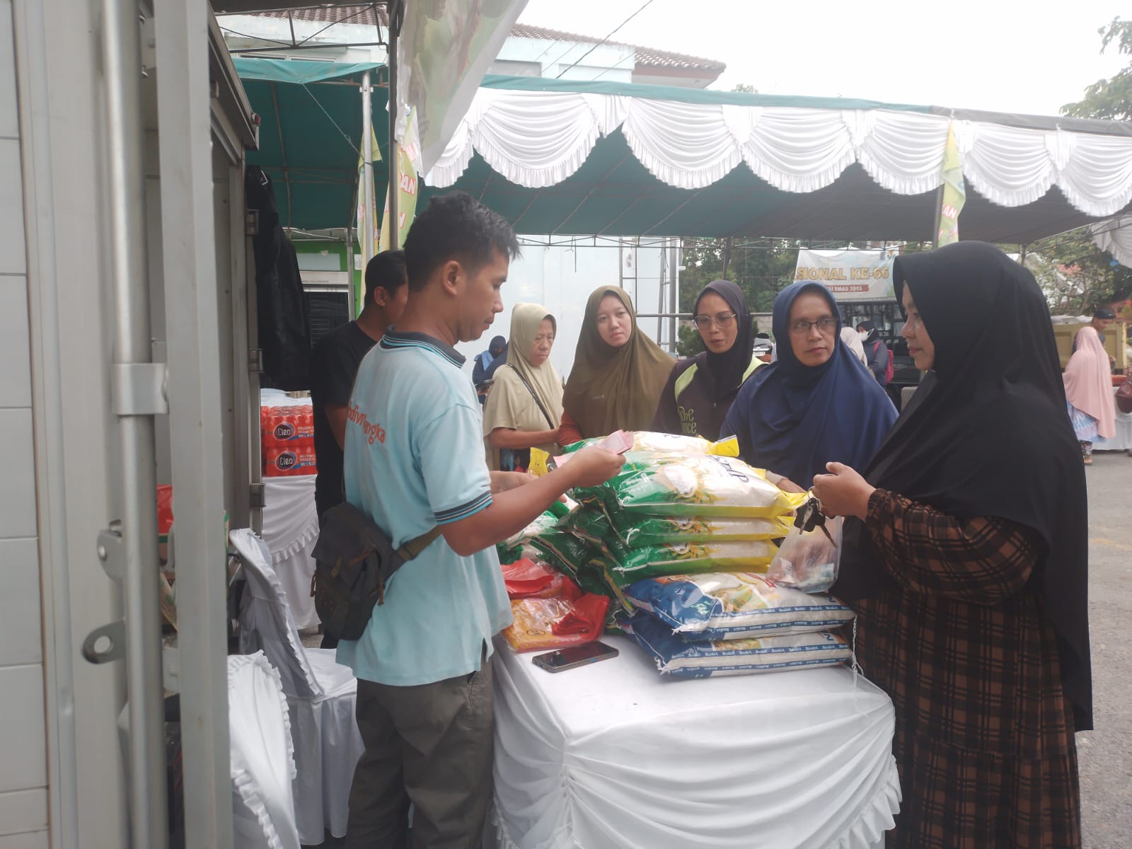 Dari sisi pasokan, distributor rata-rata membawa sekitar 2 ton beras per jenis, baik SPHP maupun premium, sehingga dinilai cukup untuk memenuhi kebutuhan masyarakat selama kegiatan berlangsung.