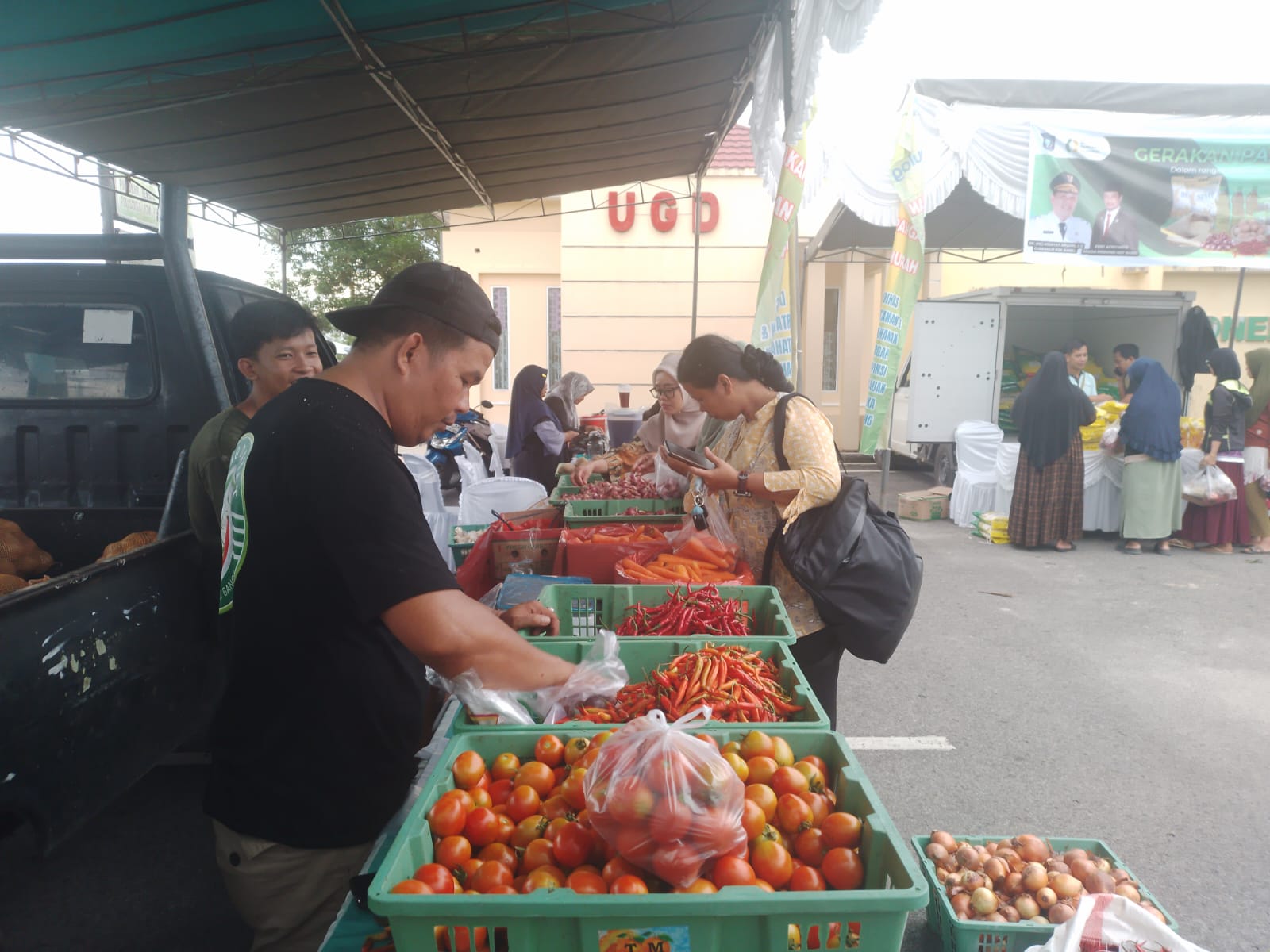Dalam kegiatan tersebut, berbagai komoditas dijual langsung kepada masyarakat, di antaranya ayam broiler sekitar Rp23 ribu per kilogram, telur Rp1.700 hingga Rp1.800 per butir, serta tomat Rp12 ribu per kilogram. Untuk cabai, cabai kecil dijual Rp50 ribu per kilogram dan cabai merah Rp45 ribu per kilogram.