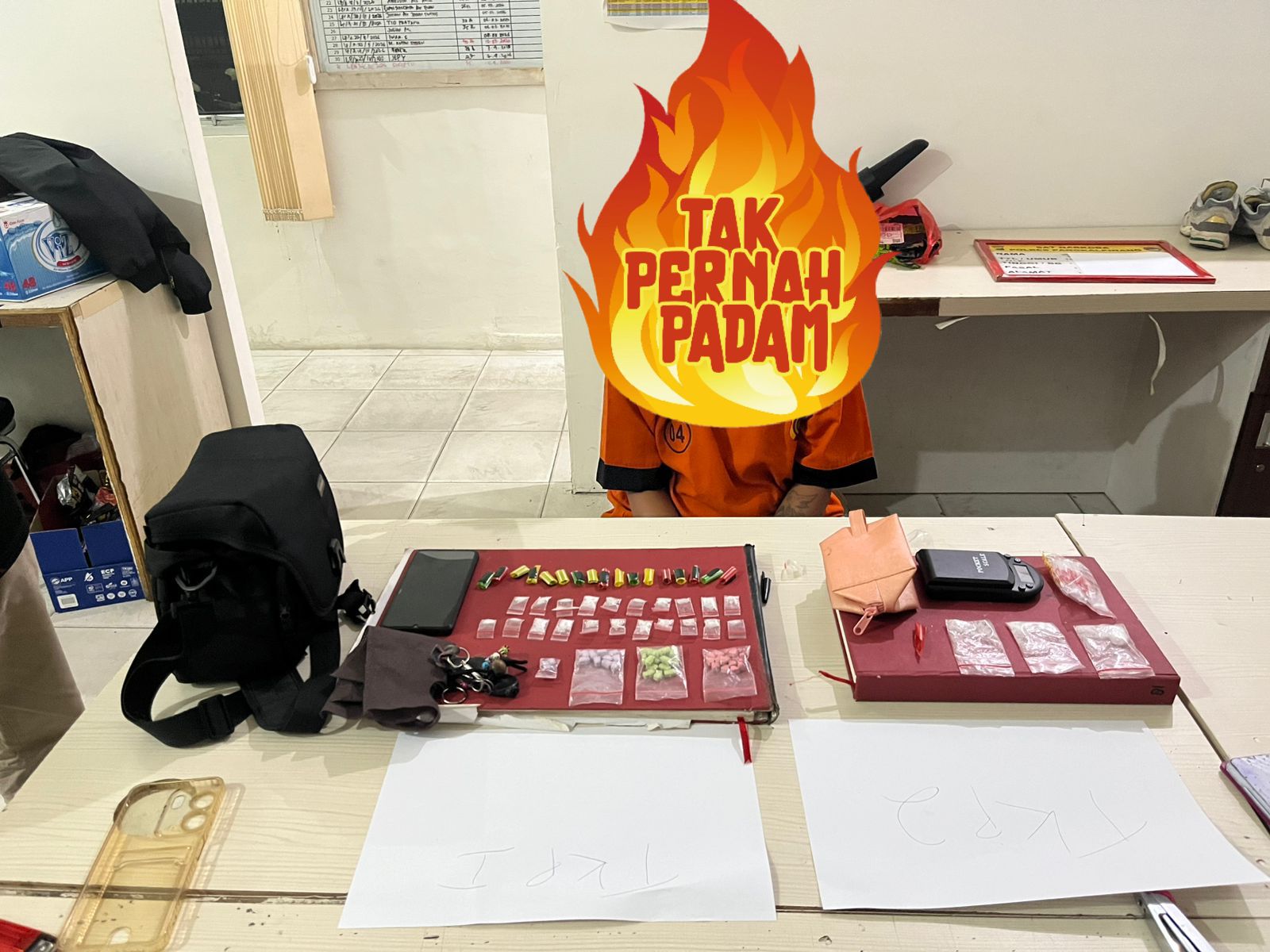 Dari hasil penggeledahan di lokasi pertama, polisi menemukan sebuah tas hitam yang berisi berbagai jenis narkotika. Di antaranya puluhan butir pil ekstasi dengan berbagai merek dan warna, serta sabu yang telah dikemas dalam puluhan plastik kecil siap edar.