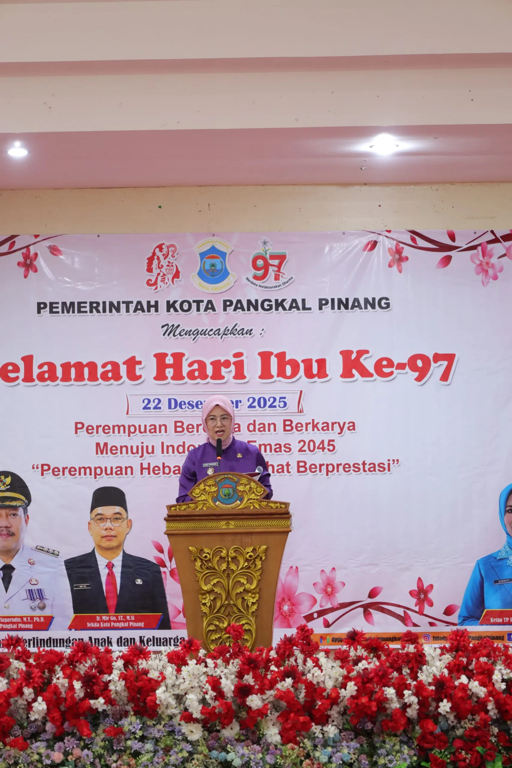 Pangkalpinang, IrroNews.com – Wakil Wali Kota Pangkalpinang, Dessy Ayutrisna, menegaskan bahwa perempuan memegang peranan penting dalam mewujudkan visi Indonesia Emas 2045. Hal tersebut ia sampaikan pada puncak peringatan Hari Ibu ke-97 yang digelar di Ruang OR Pemkot Pangkalpinang, Kamis (11/12/2025).